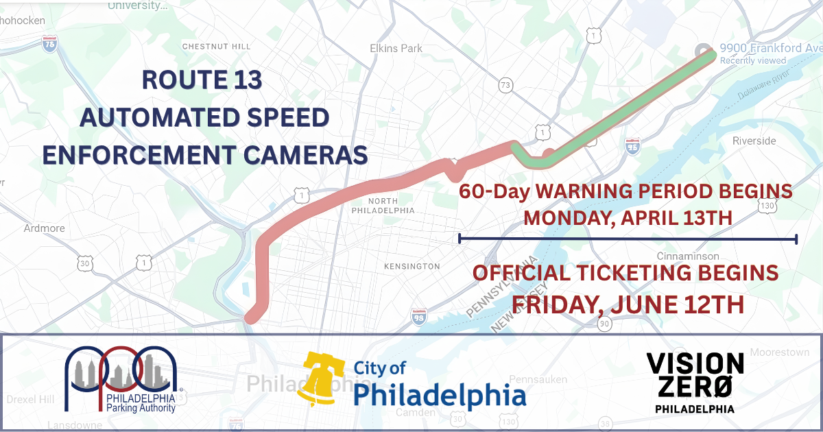 “Speed enforcement cameras are critically important tools that have dramatically reduced speeding along Roosevelt Boulevard by 95%,” said Rich Lazer, Executive Director of the Philadelphia Parking Authority. “This program is about improving public safety and saving lives. We hope to bring about similar results along Broad Street, where cameras were installed last year, and now Route #13.”