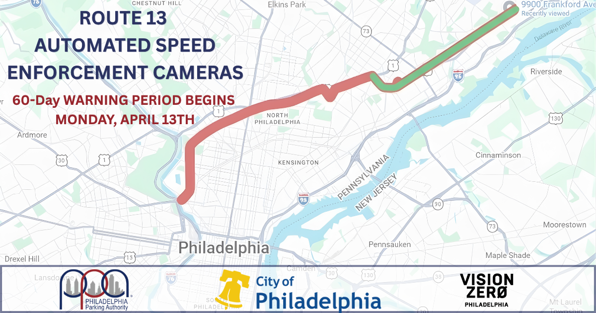 “Speed enforcement cameras are critically important tools that have dramatically reduced speeding along Roosevelt Boulevard by 95%,” said Rich Lazer, Executive Director of the Philadelphia Parking Authority. “This program is about improving public safety and saving lives. We hope to bring about similar results along Broad Street where cameras were installed last year, and now Route #13.”